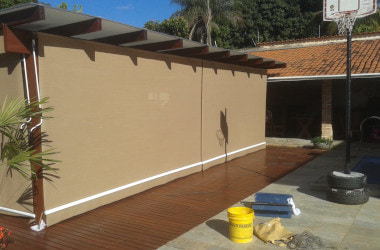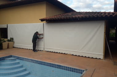 O Toldo Cortina pode ser usado em interiores e áreas externas. Protege da exposição solar e das chuvas.
